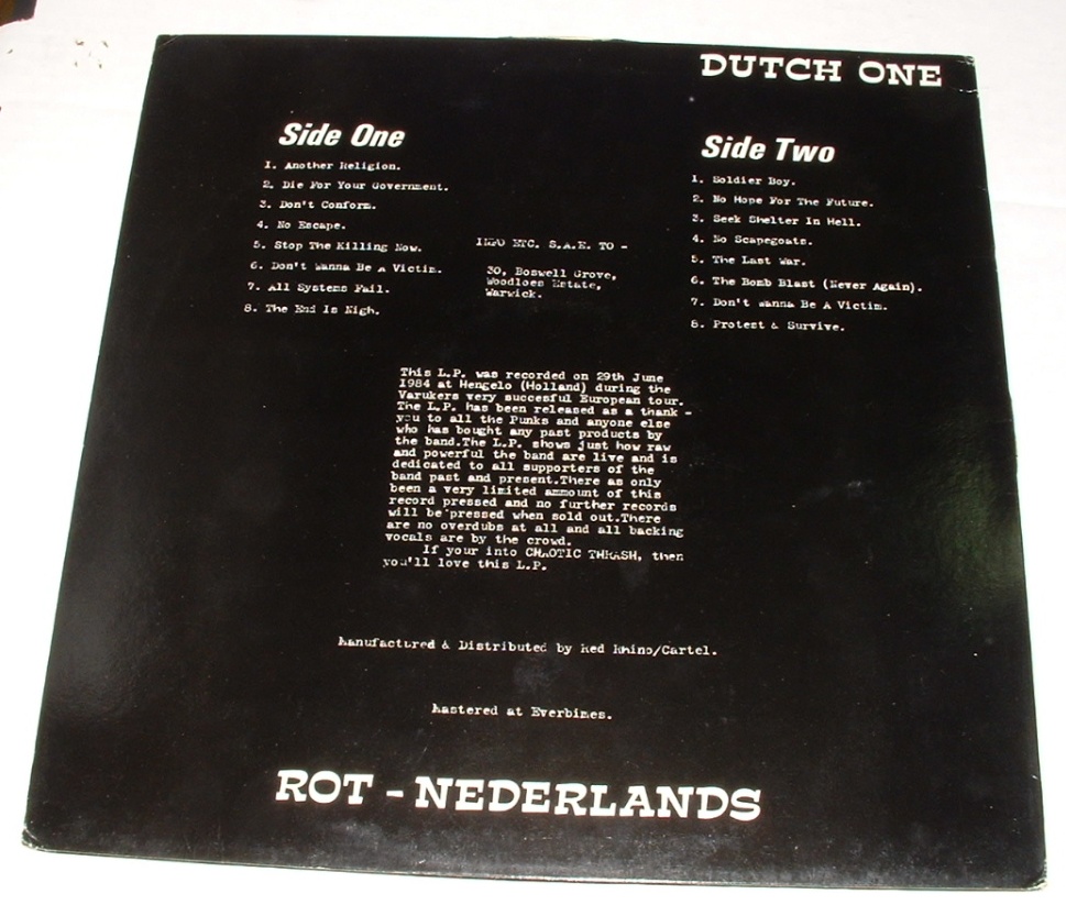 VARUKERS-LIVE IN HOLLAND LP 1985 ROT RECORDS 1500 MADE .(16 songs Recorded in June1984)....EX+/NM-